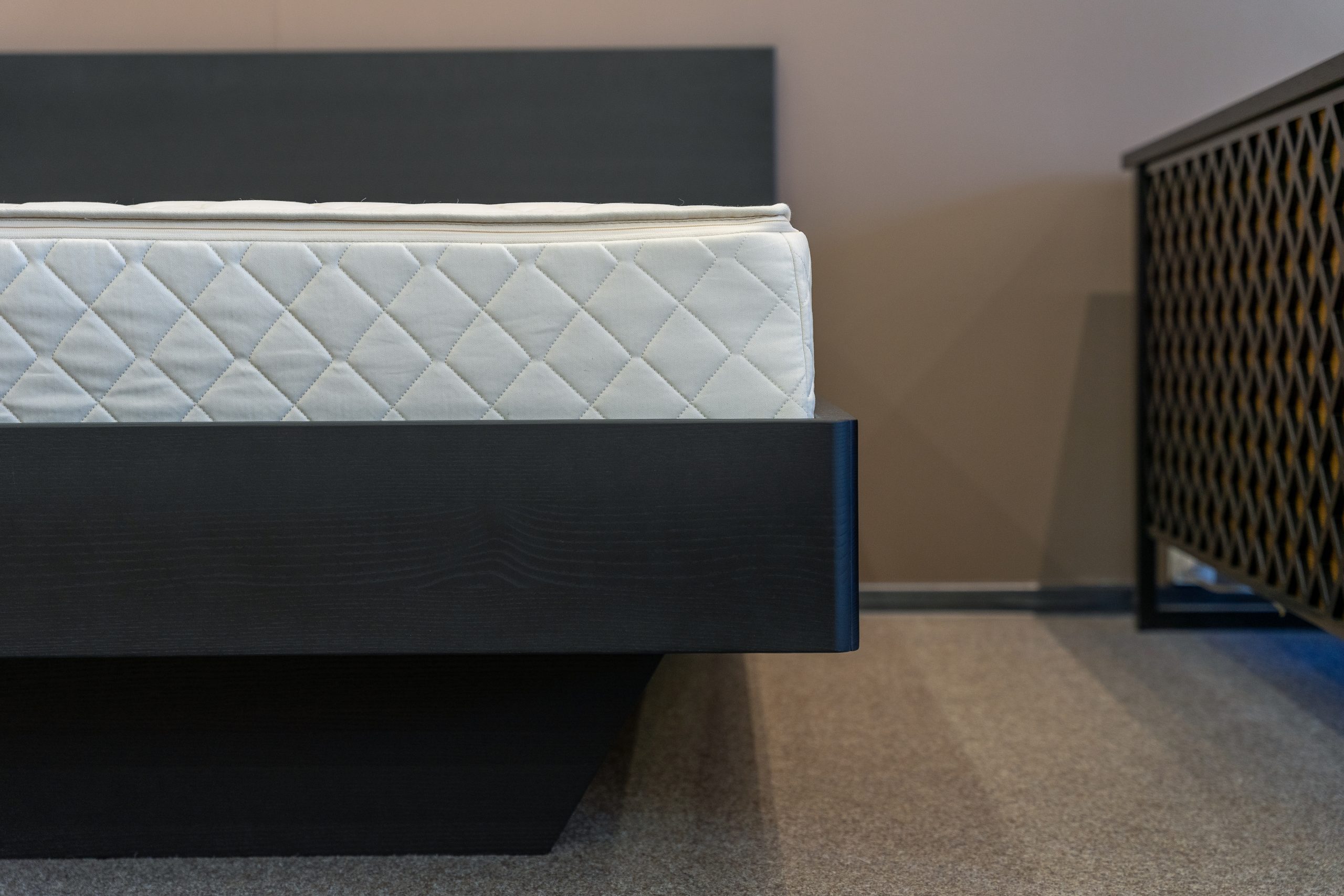 Lova Gilė 18 kabanti konstrukcija, galvūgalis 45 – Lova su grotelėmis, lovos rėmo aukštis 18 cm iš uosio medienos, galvūgalis Siena 45. Lova be patalynės dėžės.