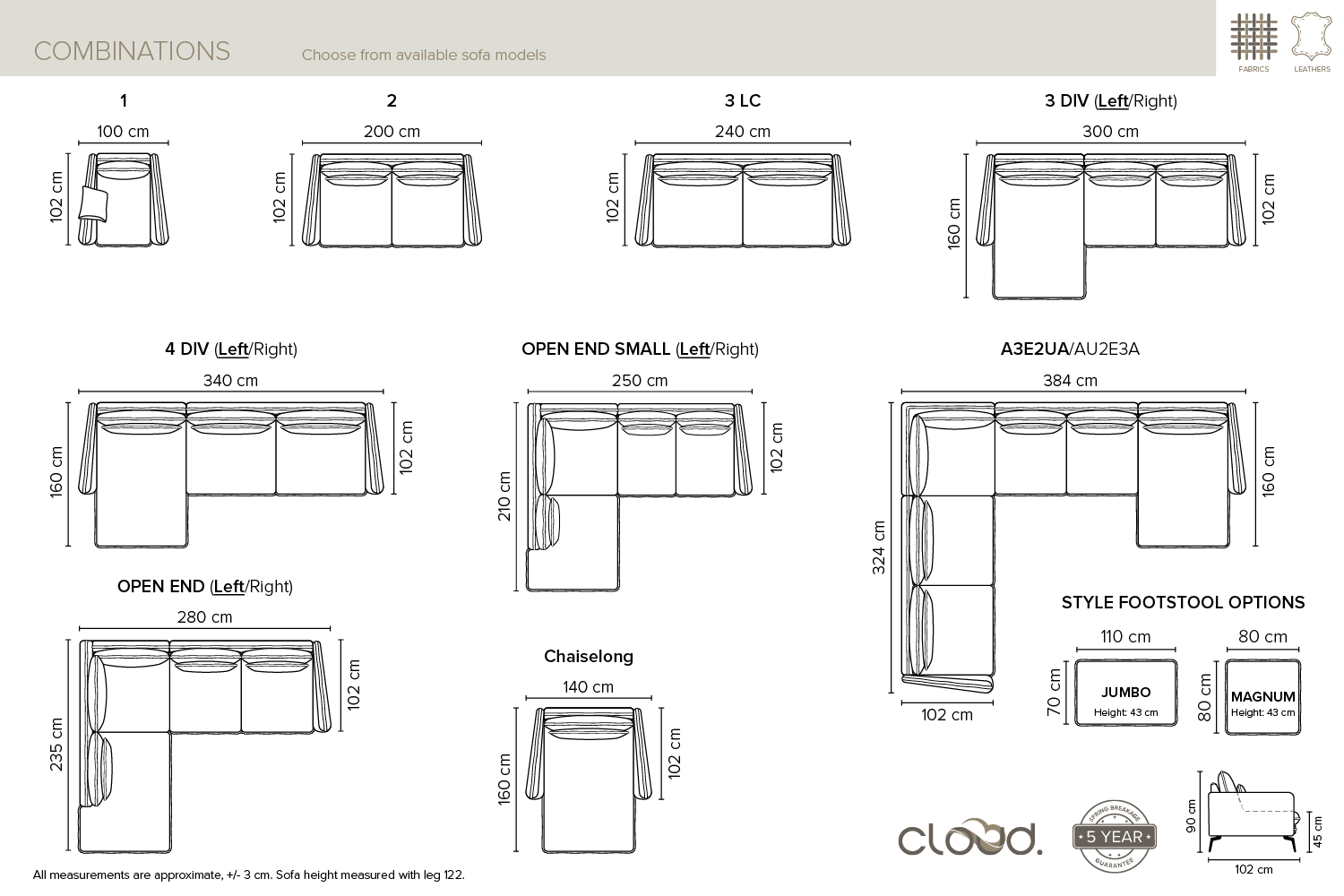 Šios sofos kaina labai skiriasi nuo pasirinktos kombinacijos bei audinio, tad siūlome užsukti į mūsų salonus ir ją pasižiūrėti „gyvai”.